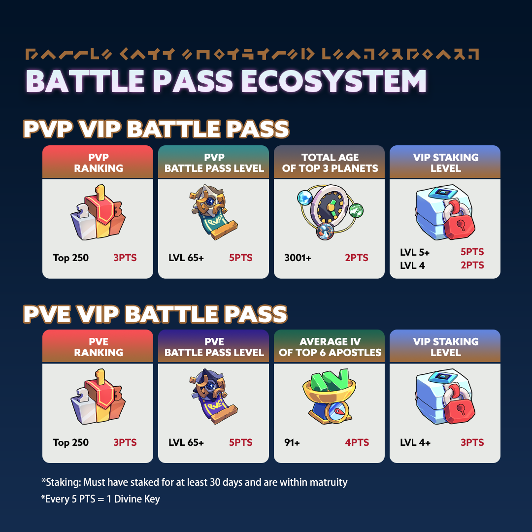We’ve updated the eco-system points structure that allows players to earn Divine Keys every two weeks, with snapshots taken at 10:00 UTC on Oct 13, Oct 27, and Nov 10: