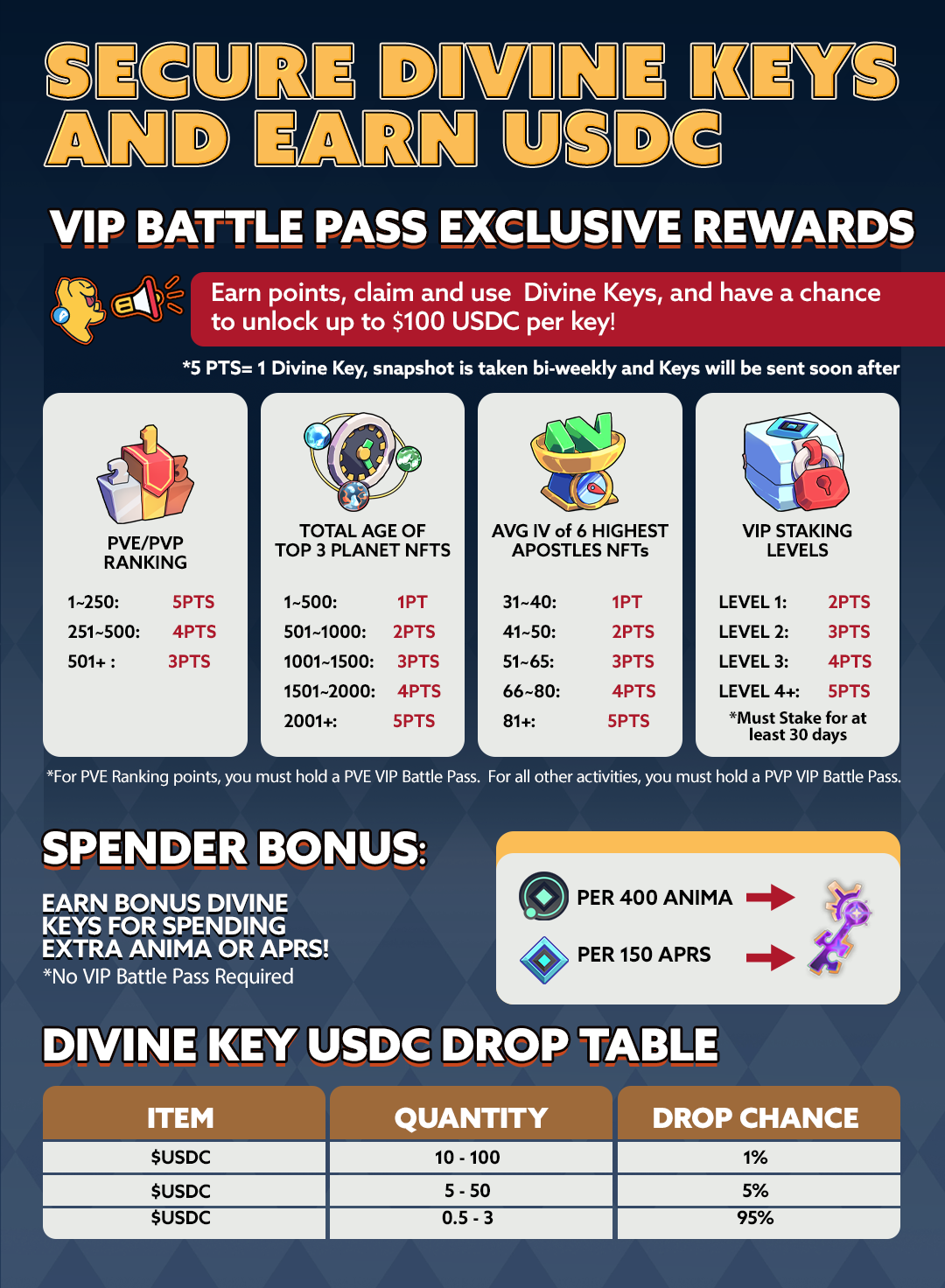 Those who purchase our VIP PvP Battle Pass will now have access to rewards in the form of USDC and Divine Keys (which also contain USDC).