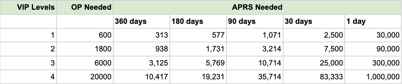Orderly Points (OP) required for VIP Staking at Levels 1 - 4